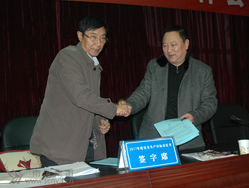 王董事長(zhǎng)到會(huì)作重要講話(huà)  王董事長(zhǎng)與高坪分公司經(jīng)理蒲正宏簽訂《2017年度安全生產(chǎn)目標(biāo)管理責(zé)任書(shū)》