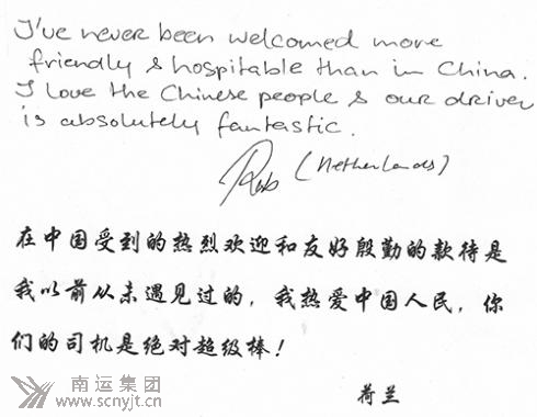 外賓給南運(yùn)集團(tuán)駕駛員的感謝留言