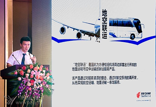 中國(guó)國(guó)際航空公司工作人員介紹國(guó)航-重慶機(jī)場(chǎng)地空聯(lián)運(yùn)產(chǎn)品