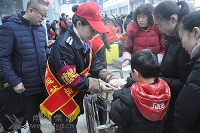2019年2月10日,是農(nóng)歷已亥年的正月初六。由于春節(jié)假期即將結束,大量鄉(xiāng)親踏上了返崗的旅途。南充汽車客運站候車大廳內(nèi)人頭攢動,熙熙攘攘。上午9:00時左右,正是客流高峰,只見兩名身穿客運站工作制服、肩披“南充汽車客運站匡紅艷愛心班”綬帶,頭戴小紅帽的年輕站務員,推著手推車。她們就是車站“匡紅艷愛心班”第二屆班長胡燕和成員李莉,一邊慢慢行走,一邊說道:“各位旅客大家好,今天是大年初六,你們就要離開家鄉(xiāng)遠行了。我們南充汽車客運站專門為大家準備了水餃,給大家餞行,有需要的請告訴我們! 一對旅客夫婦主動詢問道:“好多錢一碗?”胡燕說:“不要錢,是我們車站免費給大家提供的!薄澳銈冘囌具這么好哇,那給我們來兩碗嘛,我們從鄉(xiāng)下來,還真的沒吃早飯。”胡燕和李莉將兩碗水餃熱情地送到了這對旅客夫婦手中。旅客夫婦說:“謝謝你們,沒想到在車站又嘗到了年味! 見此情景,一些旅客陸續(xù)聚攏到推車跟前,“阿姨!我要吃餃子。”一名小朋友走近推車喊道。“要得,阿姨給你舀!焙嗪屠罾蚰贸鲲埡锌曜,舀好一碗又一碗,送到需要的旅客手中。 “大哥,你到哪里去?”胡燕一邊忙著端水餃,一邊問一位前來的旅客。“我到貴陽,明天就要上班了,路程長,今天我想可能要餓肚子,沒想到你們還準備了水餃,你們車站真好,給我留下了今年春節(jié)家鄉(xiāng)的美好印象,謝謝你們!”“不用謝,這是我們應該做的。我們車站每年初六都要為大家煮水餃,給大家提供方便,祝你旅途愉快!焙嗷卮鸬。“你們想得周到,謝謝你們!”旅客吃著熱騰騰的水餃連聲說道。 整整一個上午,胡燕和李莉送了一車又一車,直至將40斤水餃全部送完。她們看見旅客舒心地坐在候車大廳里,滋滋有味地吃著水餃,十分愉快開心。 春節(jié)期間,南充汽車客運站深入開展“情滿旅途”活動,全力做好農(nóng)民工返鄉(xiāng)返崗關愛服務工作,熱心為旅客送開水、做好事、猜謎語、搞游園等。其中,大年初一送湯圓和大年初六送水餃,是一直堅持開展的兩項愛心志愿服務活動,自2010年春運開始,連續(xù)九年堅持不懈,受到了廣大旅客及社會各界的廣泛好評。一些旅客紛紛拍照留影,在網(wǎng)絡媒體上自發(fā)傳播,產(chǎn)生了良好的社會影響。 (李曉光)