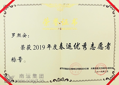 南運集團南充市城北車站羅雪、弋燕平、西門車站羅熙安3名同志榮獲南充市順慶區(qū)“2019年度春運優(yōu)秀志愿者”上臺領(lǐng)獎。