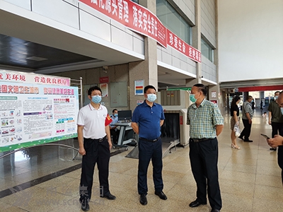 閬中市委副書記、市長楊德宇(中),副市長、市公安局局長祝隆平(左),在閬中客運中心視察工作。