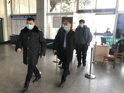 市經(jīng)濟(jì)和信息化局局長、市春運(yùn)工作領(lǐng)導(dǎo)小組辦公室主任石全華(左二)檢查南充汽車客運(yùn)站春運(yùn)工作。
