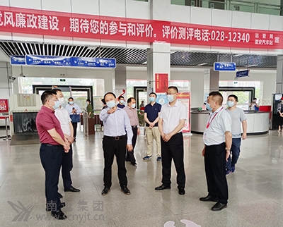 中共南充市委常委、市總工會主席李在偉(左四)到蓬安汽車客運站檢查安全及防疫工作。