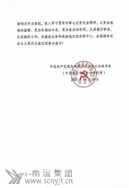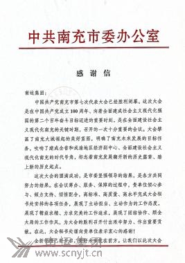 中國共產(chǎn)黨南充市第七次代表大會秘書處給南運集團致《感謝信》
