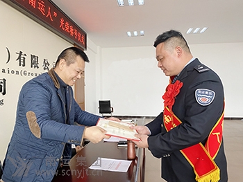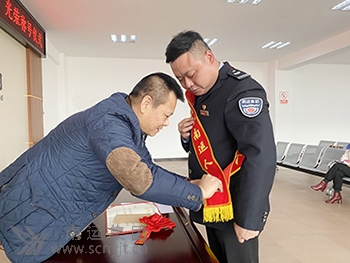南運集團(tuán)黨委副書記、工會主席鮮志強為蘇城佩戴“見義勇為南運人”綬帶并頒發(fā)《榮譽證書》及獎金。