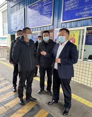 市交通運輸局副局長馬七林(左二)檢查南充汽車客運站防疫和安全工作。