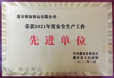 蓬安相如客運(yùn)有限公司榮獲 “2021年度安全生產(chǎn)工作先進(jìn)單位”稱號