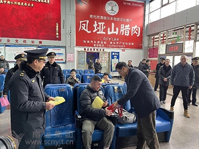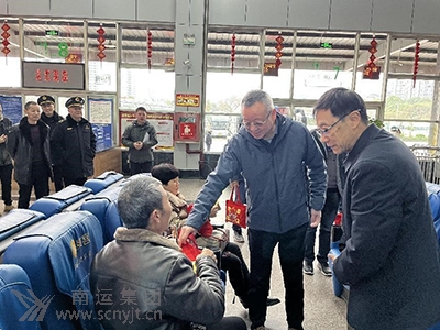 南充市交通運輸局一級調(diào)研員張世民向旅客贈送春運禮包
