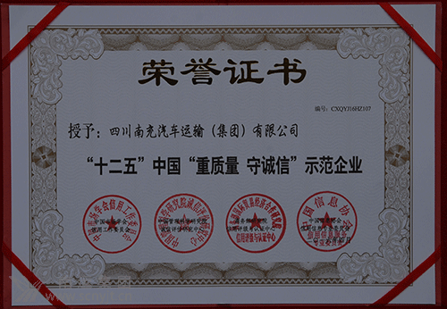 南運(yùn)集團(tuán)榮膺“十二五”中國“重質(zhì)量 守誠信”示范企業(yè)稱號