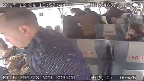 駕駛員安全停車后,迅速對(duì)患病乘客進(jìn)行緊急救援 (車載視頻監(jiān)控拍攝畫面)