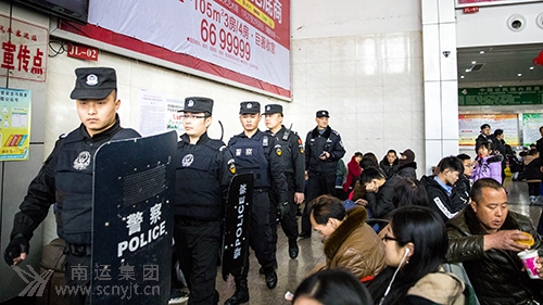 車站派出所公安干警和特警巡邏執(zhí)勤