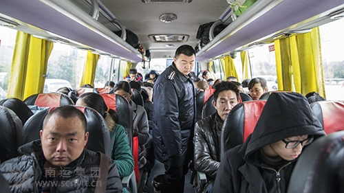 2月21日,戊戌年正月初六,是春節(jié)小長(zhǎng)假的最后一天,陰間多云,春寒風(fēng)微。南充汽車客運(yùn)站候車大廳外的玻璃上張貼著省運(yùn)管局印制的“平安春運(yùn) 回家過(guò)年”的宣傳畫,“營(yíng)造平安春運(yùn)、溫馨春運(yùn)、誠(chéng)信春運(yùn)、便捷春運(yùn)”的紅底白字橫幅特別醒目,歡度佳節(jié)的6個(gè)大紅燈籠和一排排波瀾起伏、五顏六色的彩帶高高掛起,讓旅客們感受到濃厚的春節(jié)氛圍。候車廳內(nèi)懸掛著大紅燈籠和大紅中國(guó)結(jié),新安裝的中央空調(diào)全部開啟,熙熙攘攘的旅客,暖意融融。 旅客自助(售)取票 售票大廳里旅客排隊(duì)購(gòu)票秩序井然。由于車站網(wǎng)上購(gòu)票的旅客逐年增多,9個(gè)售票窗口各排著約10人左右購(gòu)票的旅客隊(duì)伍。在四川汽車票務(wù)網(wǎng)兩名工作人員和1名“小紅帽”站務(wù)人員的引導(dǎo)下,絡(luò)繹不絕的旅客在6臺(tái)自助(售)取票機(jī)前便捷的。ㄙ(gòu))票。一名去內(nèi)江的靚妹,在自助(售)取票機(jī)上很快取到了由南充去內(nèi)江的汽車票,她高興地說(shuō):“網(wǎng)上購(gòu)票真方便”。 實(shí)名檢票進(jìn)站 旅客進(jìn)入候車大廳內(nèi)的進(jìn)站口,小喇叭響亮地提示旅客:“請(qǐng)出示身份證,依次實(shí)名檢票進(jìn)站”。3名“小紅帽”站務(wù)人員認(rèn)真地查驗(yàn)了每一位旅客的身份證后,才準(zhǔn)予入內(nèi)。兩臺(tái)行包安檢機(jī)不停地工作著。“大包小包請(qǐng)過(guò)安檢”的小喇叭又溫馨地提示著旅客。2名保衛(wèi)科人員警惕地值守,不斷地引導(dǎo)著旅客對(duì)每一件行包認(rèn)真安檢,嚴(yán)防易燃、易爆、易腐蝕等危險(xiǎn)物品進(jìn)站上車,并手持金屬探測(cè)儀對(duì)每一名旅客進(jìn)行進(jìn)站安檢。同時(shí),安檢機(jī)后面還有2名保衛(wèi)科人員認(rèn)真守護(hù),隨時(shí)對(duì)可疑行包進(jìn)行開包檢查。 由于車站對(duì)站務(wù)管理系統(tǒng)進(jìn)行了全面升級(jí),不僅實(shí)行網(wǎng)上購(gòu)票,還新設(shè)置了3套自助檢票機(jī)、2臺(tái)自助結(jié)算打印機(jī),旅客購(gòu)票后,通過(guò)車票掃描自動(dòng)開啟檢票,既提升了旅客進(jìn)站乘車的便利性,又有效節(jié)約了人力成本和企業(yè)開支。 在5號(hào)自助檢票口,一位去金城的小伙子在“小紅帽”站務(wù)人員引導(dǎo)下,把車票在自助檢票機(jī)上一掃,便很快地進(jìn)入站臺(tái)上車,他興奮地說(shuō):“車站自助檢票真爽!” “小紅帽”送“愛(ài)心餃子” 頭戴“小紅帽”、身佩大紅綬帶的匡紅艷愛(ài)心班的站務(wù)人員,不停地穿行在售票廳、候車廳。有引導(dǎo)旅客購(gòu)票上車的導(dǎo)乘人員,有在咨詢處為旅客不厭其煩耐心解答的咨詢?nèi)藛T,有在車站候車廳為旅客送鮮開水的服務(wù)人員,有滿腔熱情地扶老攜幼的青年志愿者。一位年老的大爺和大媽拿著兩張9:30南充至綿陽(yáng)的車票問(wèn)“小紅帽”站務(wù)人員:“我們老倆口到綿陽(yáng)的南湖車站下車,這趟車會(huì)不會(huì)去南湖車站呢?”“小紅帽”站務(wù)人員說(shuō):“我站南充發(fā)往綿陽(yáng)的班車,終點(diǎn)站是綿陽(yáng)的南湖車站下車,大爺大媽放心吧!”這老倆口滿臉的疑慮才云開霧散,輕聲地對(duì)“小紅帽”站務(wù)人員說(shuō)道“謝謝!” 中午12點(diǎn)多鐘,“小紅帽”站務(wù)人員又為焦躁等候上車還來(lái)不及吃午飯的旅客,送來(lái)了一碗又一碗的熱氣騰騰的“愛(ài)心餃子”,候車廳沸騰了起來(lái),有的旅客說(shuō):“車站想得太周到了!”有的旅客說(shuō)“再嘗嘗家鄉(xiāng)的年味道,就上車去打工了!”有的年輕小伙子和姑娘干脆舉起手機(jī)拍下這一溫馨的時(shí)刻,為南充汽車客運(yùn)站點(diǎn)贊! 客車?yán)龣z認(rèn)真負(fù)責(zé) 車站車輛例檢處,安全例檢人員認(rèn)真負(fù)責(zé)地對(duì)所有參營(yíng)車輛逐車進(jìn)行安全例檢,防止車輛帶“病”應(yīng)班,對(duì)例檢不合格的車輛,堅(jiān)決責(zé)令駕駛員進(jìn)行維修合格之后才準(zhǔn)予報(bào)班。 嚴(yán)把出站安全關(guān)口 每一輛客車載客發(fā)車出站時(shí),車站安全人員均要登上客車車廂內(nèi),再一次仔細(xì)清點(diǎn)登記出站旅客乘車人數(shù),檢查和勸導(dǎo)旅客系安全帶的情況,對(duì)駕駛員進(jìn)行酒精度檢測(cè),督促駕駛員對(duì)旅客作出安全承諾,認(rèn)真執(zhí)行“六不出站”的安全制度,確!叭恕④、單”完全相符后客車才準(zhǔn)予發(fā)車出站,保障旅客的出行平安。 營(yíng)造良好候車環(huán)境 “嚴(yán)禁在室內(nèi)公共場(chǎng)所吸煙”的黃色標(biāo)語(yǔ)不斷地在電子顯示屏上滾動(dòng)顯示,候車廳雖然人頭攢動(dòng),但未見一名旅客吸煙。整個(gè)車站以及車站廁所,隨時(shí)可見保潔人員不停地清掃著旅客丟棄的紙屑、果皮、雜物,使乘車環(huán)境清潔衛(wèi)生。車容車貌檢查崗對(duì)檢查不符合衛(wèi)生條件的客運(yùn)車輛,責(zé)成駕駛員開去洗車場(chǎng)清洗干凈后才準(zhǔn)予應(yīng)班。 領(lǐng)導(dǎo)坐陣指揮春運(yùn) 上午9點(diǎn)鐘,集團(tuán)公司董事長(zhǎng)、總經(jīng)理、黨委書記王希平率副總經(jīng)理郭慶生、岳軍、鄭永強(qiáng),監(jiān)事會(huì)主席、紀(jì)委書記姚素平與
