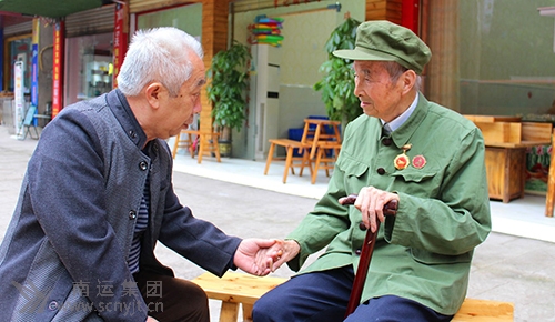 南運(yùn)集團(tuán)高坪分公司退休職工夏則鳴(右一)和唐德民拉家常