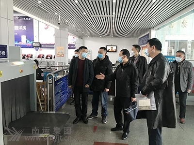 市交通運(yùn)輸局副調(diào)研員尹毅(右一)、市運(yùn)管局副局長(zhǎng)廖洪堯(右二)驗(yàn)收南充汽車(chē)客運(yùn)站反恐怖防范試點(diǎn)工程。