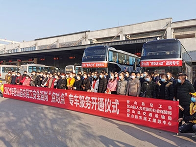 2021年?duì)I山縣農(nóng)民工安全返崗“點(diǎn)對點(diǎn)”專車服務(wù) 開通儀式在營山汽車客運(yùn)站舉行