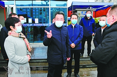 市委書記劉強(中)在南運集團營山汽車客運站檢查疫情防控工作。