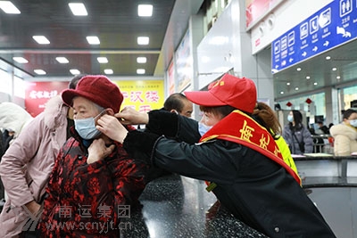 該車站持續(xù)優(yōu)化售票組織工作,積極拓展互聯(lián)網、小程序等售票渠道,以及手機支付等應用范圍,充分發(fā)揮10臺自動售(取)票機的作用,引導旅客使用智能自助購取車票,減少近距離接觸,切實便捷旅客購票乘車。同時開設“老弱病殘、孕、軍人購票優(yōu)先窗口”、“農民工售票窗口”等3個人工售票窗口,延長開窗時間,調整窗口功能,確保旅客到站購票不排長隊。另還新增了1臺導購機,旅客在上面可自主查詢發(fā)班信息。志愿者們分別引導旅客在自助購(取)票機上自行購(。┢保新每妥杂X保持一米間距,一切井然有序。有位七十歲的大爺徑直走到自助購(取)票機上,在志愿者的引導下,一分鐘不到就買到車票,他十分高興地說:“現(xiàn)在買票不用排隊了,直接在機器上購取票,十分快速方便!” 外面寒風冷冽,站內暖意融融。頭戴小紅帽的“匡紅艷愛心班”站務人員在售票廳和候車廳不停地來回穿梭著,積極熱情地為旅客提供乘車咨詢、提拉行李、扶老攜幼、搬運行李、購票取票、提供熱水等便民志愿服務,將“情滿旅途”志愿服務融入旅客出行的每個細節(jié),切實保障每位旅客能舒心返崗,讓旅客們感受來自南運人的溫暖。
