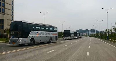 實行隔離的南運集團大巴整齊停放