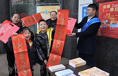 年味漸進,為營造春節(jié)氛圍,1月20日上午,南充市城北汽車客運站為務工人員返鄉(xiāng)回家過年的旅客送“福袋”。 據(jù)悉,“福袋”里有窗花、對聯(lián)、紅包,旅客在購票排隊領(lǐng)取車站派送的新春禮物“福袋”!皼]想到剛抵達城北汽車站,就收到驚喜!币晃粡膹V州返鄉(xiāng)的南充籍務工人員如是說。 目前正值外出務工人員返鄉(xiāng)的高峰期,該站特準備“福袋”作為禮物送給旅客,讓他們帶“!被丶疫^年。當天,該站免費送出“福袋”200多份,受到旅客點贊。 (城北汽車客運站 羅雪)