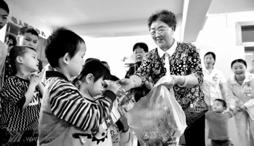 5月26日下午,南運(yùn)集團(tuán)“愛(ài)心婆婆”葉千秀帶著禮物,來(lái)到市兒童福利院,提前陪孩子們過(guò)“六一”。今年,是葉婆婆陪孩子們過(guò)的第十個(gè)兒童節(jié)。 “葉婆婆,謝謝你來(lái)看我們!笨吹饺~千秀,孩子們高興不已,圍在葉千秀的身邊,親切地向她問(wèn)好!皝(lái),孩子們,這是我給你們的節(jié)日禮物,祝你們節(jié)日快樂(lè)!比~千秀拿出餅干、糖果,一 一分發(fā)給孩子們。隨后,葉千秀又拿出2000元現(xiàn)金,交給福利院工作人員,叮囑工作人員給孩子們買點(diǎn)他們喜歡的玩具。 葉千秀是南運(yùn)集團(tuán)一名普通的退休老人,她先后幫助26名大學(xué)生完成學(xué)業(yè),還資助了1名高中生,兩名初中生。兒童康復(fù)中心的孩子需要幫助,她慷慨解囊;老年合唱團(tuán)沒(méi)活動(dòng)經(jīng)費(fèi),她伸出捐助之手。從2007年開(kāi)始,她每年都會(huì)到兒童福利院陪孩子們過(guò)節(jié)。16年來(lái),她已捐出58萬(wàn)元現(xiàn)金。 (摘自2016年5月27日《南充日?qǐng)?bào)》第六版 記者 陸待君)