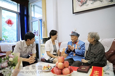 市委組織部副部長、老干部局局長劉彬(左二),南運(yùn)集團(tuán)黨委書記、董事長、總經(jīng)理王希平(左一),看望慰問南運(yùn)集團(tuán)老紅軍曹守成。