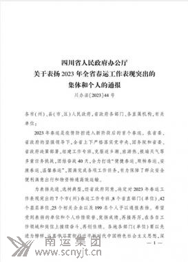 南運集團被四川省人民政府表彰為 “2023年全省春運工作表現(xiàn)突出的集體”