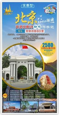 北京故宮、(清華科技園)、(清華優(yōu)秀畢業(yè)生學習經(jīng)驗分享)、八達嶺長城、中國科技館+北戴河海濱浴場(乘坐豪華游輪海上觀光)+天津周鄧紀念館8日營 特色:1.培養(yǎng)科技創(chuàng)新潛質(zhì),讓綜合素質(zhì)更臻完善。 2.探尋歷史感悟人文,參與城市體驗,開闊視野。 3.聆聽高端智慧分享,掌握科學方法,提高學術(shù)素養(yǎng)。 4.相約中國傳統(tǒng)文化,考察長城防御,增添建筑思維。 5.自主管理成長歷練,凝聚團隊精神,鑄就合作品質(zhì)。 6.海濱-盡情嬉戲,乘坐豪華游輪海上觀光,放開心扉暢快游玩。 夏令營贈送:營服、營帽、旅游胸牌、當?shù)孛刻煲黄康V泉水、集體照一張、陪同人員! D1:成都西—北京西 。夯疖嚿 成都西乘火車T8次08:10分硬臥(途經(jīng):德陽、綿陽、江油、廣元)。在夏令營領(lǐng)隊人員的帶領(lǐng)下沿途欣賞中華山水美景,一路歡歌笑語,一路溫馨平安,奔向偉大祖國首都——北京。 D2:北京 住:北京/周邊 12:36 北京西站接站; 13:15 乘車出發(fā),前往天安門廣場; 14:00 游覽天安門廣場(約1小時),這是世界上最大的城市廣場,也是社會主義新中國的象征。 15:00 參觀故宮博物院(約2小時)。故宮是明、清兩代的皇宮,世界現(xiàn)存最大、最完整的古代宮殿建筑群,凝結(jié)著歷史的煙云,記載著歲月的滄桑。在這里,巧奪天工的建筑、燦爛文明的見證足以激起每一個華夏兒女的民族自豪感。游覽太和、中和、保和三大殿和乾清宮、坤寧宮、文華殿、御花園等建筑,探訪神秘的皇宮內(nèi)院歷史遺跡,感受博大精深的中華文化。 18:30 晚餐19:30乘車返回酒店休息。 D3:北京 。罕本/周邊 07:00 營員起床洗漱 07:30 早餐 08:00 前往軍事博物館 08:30 中國人民革命軍事博物館位于北京天安門西面的長安街延長線上,籌建于1959年,是向國慶10周年獻禮的首都十大建筑之一。是中國唯一的大型綜合性軍事歷史博物館,全館有22個陳列廳、2個陳列廣場。軍博收藏34萬多件文物和藏品。其中國家一級文物1793件,大型武器裝備250余件,藝術(shù)品1600余件,對外軍事交往中受贈禮品2551件。其中有銅鎏金弩機、鎮(zhèn)遠艦鐵錨、葉挺指揮刀、三八式步槍和解放軍第一輛坦克等重大歷史價值文物。 10:00 走進中國最杰出的大學之一:清華大學科技園區(qū)(約1小時)。參觀清華校科技園區(qū),感受清華文化。政策性閉校外觀。PPT展示,了解清華、北大悠久歷史與校園風光,零距離的接觸清華的優(yōu)秀學子們,感受他們的智慧,感知他們的拼搏,同學們,讓我們用心品味一下大學真正的精髓與文化,把父母口中的"大學"切切實實的感受,清晰一下自己的未來,給自己的人生描繪一幅愿景圖吧,在這里感受中國最高學府的人文魅力。(清華優(yōu)秀畢業(yè)生學習經(jīng)驗分享)聆聽優(yōu)秀學子交流,(約40分鐘)。 贈送:清華大學博士服照片,清華大學; 12:00 午餐 14:30 游覽圓明園通票(約1.5小時)小交通自理,這里是清朝五代皇帝傾心營造的皇家營苑,被世人冠以“萬園之園”、“世界園林的典范”、“東方凡爾賽宮”等諸多美名,身臨其境后才真正了解到圓明園。跟我一起走進圓明園,一起去銘記那段屈辱的歷史! 18:00 晚餐 19:00 返回酒店休息 D4:北京 住:北京/北戴河 03:00 營員起床,洗漱,整理行裝。早餐打包。 05:00 觀看莊嚴的升旗儀式、升旗儀式如遇當日限流,則視為不可抗力因素取消,請周知。 07:30 乘車前往萬里長城。 09:00 前往“燕京八景”之首居庸疊翠,八達嶺長城, “不到長城非好漢”,登上海拔888米最高潮“北八樓”,極目遠眺,腳下的長城依山就勢,蜿蜒起伏,如一條不見首尾的巨龍在綿綿上嶺上翻滾爬到,氣勢磅礴,雄偉壯觀。 12:00 午餐。 14:00 參觀【中國科技館】(2小時),科學觀摩體驗—中國科技館。參觀現(xiàn)代科技,古代科技和兒童科技展覽。參與“月球漫步” “模擬飛機”“機器人樂隊”“虛 擬世界”“魔力水車”“航天飛機科學實驗”等豐富有趣,可以增長知識項目,營員動手探索實踐,用雙手感受高科技的無窮魅力,培養(yǎng)科學思想,科學方法和科學精神。 16:00 人文景觀體驗:外觀奧林匹克公園,、鳥巢、水立方外景。是2008年北京奧運會標志性建筑物之一。奧運會后成為北京市民參與體育活動及享受體育娛樂的大型專業(yè)場所,并成為地標性的體育建筑和奧運遺產(chǎn)。 18:30 晚餐。 19:30 返回酒店休息。 D5:北京-北戴河 。罕贝骱 05:00起床、洗漱,用早餐。 6:00前往北京火車站根據(jù)火車時間或者汽車前往北戴河; 11:00抵達北戴河用午餐。 12:30參觀【奧林匹克大道公園】(1小時),欣賞奧運之美。鄧亞萍、王軍霞等十多位奧運冠軍曾親臨這里,感受奧運精神,向奧運冠軍學習。營員們可與前奧委會主席薩馬蘭奇塑像合影留念,精美的浮雕、音樂噴泉、單體雕塑、中國奧運冠軍手足印及簽名、運動場、輪滑場和戶外健身設(shè)施等,親身體驗更高,更快,更強的精神。 14:00乘坐豪華游輪【王子號或公主號游船海上觀光】(約40分鐘),乘風破浪飽覽渤海風光,遠眺秦皇島港口及沿海風光。 15:00在【海濱浴場自由活動】(約90分鐘,為保證自身安全只限觀景,不可下海游泳),舉行海邊拔河,堆城堡游戲,拋開書本,盡情享受陽光沙灘海風,組織撿拾貝殼,帶給親人和小伙伴來自大海的問候。 D6:北戴河-天津-成都 。夯疖嚿 5:00起床洗漱用早餐 6:00前往天津; 10:00 參觀【周